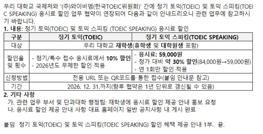 붙임 1. 정기 토익(TOEIC) 및 토익 스피킹(TOEIC SPEAKING) 할인 혜택 제공(2026) 안내.pdf